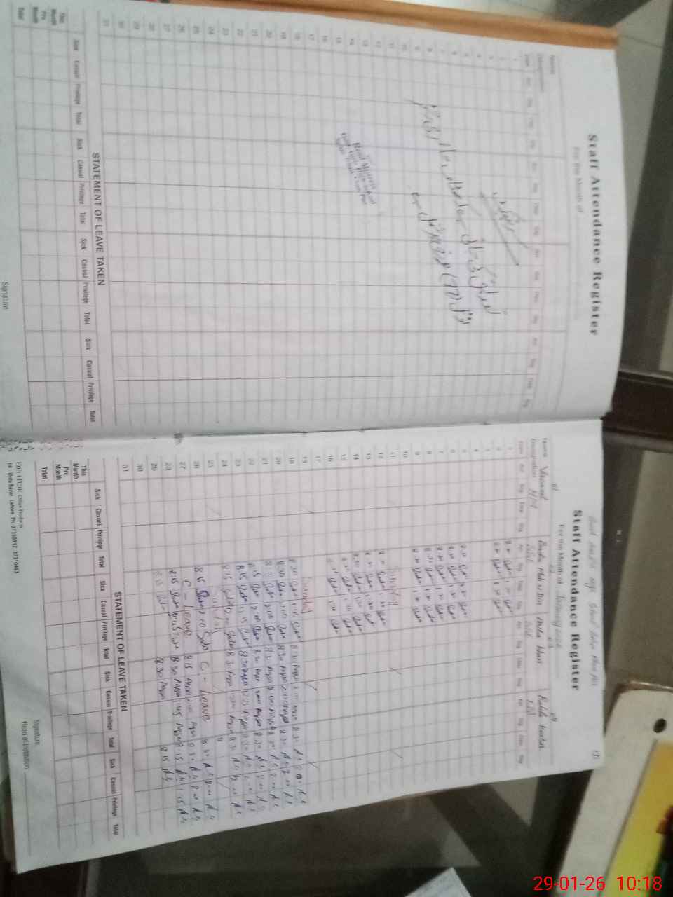 | CNIC | Full Name | Designation | R/C | Absence During Last Calender Month |