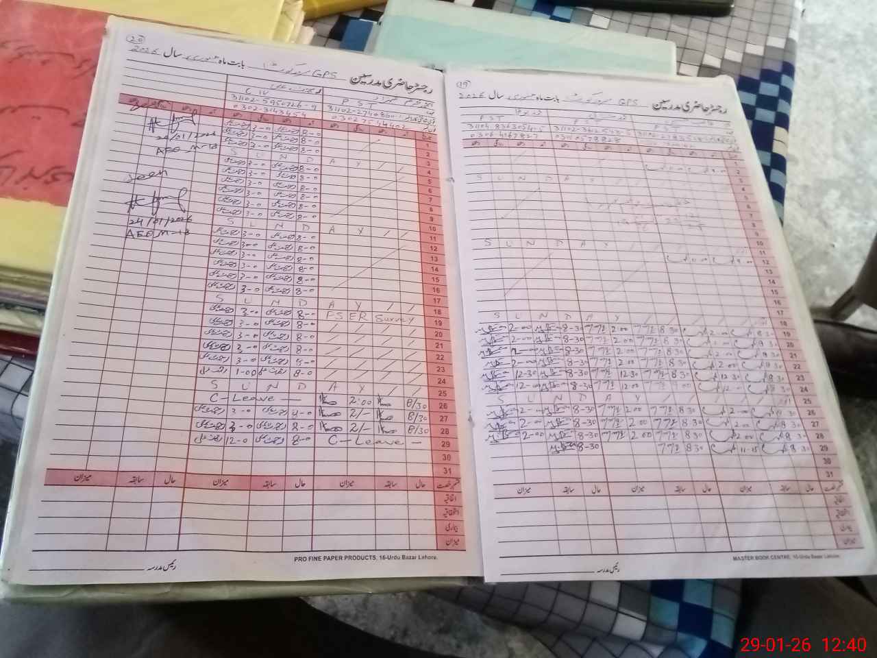 | CNIC | Full Name | Designation | R/C | Absence During Last Calender Month |