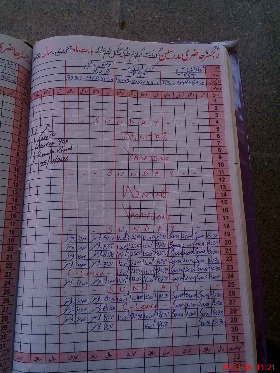 | Name: SA**** AL**** Designation: (School Headmaster's/Headmistress's) PST Phone/Cell Number: 03**** |