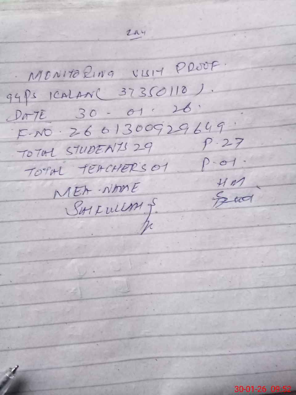 | Monitoring Date: 30-01-2026 | Start Time: 30-01-2026 09:27 AM | End Time: 30-01-2026 09:52 AM | Name of MEA: Sa**** | |
