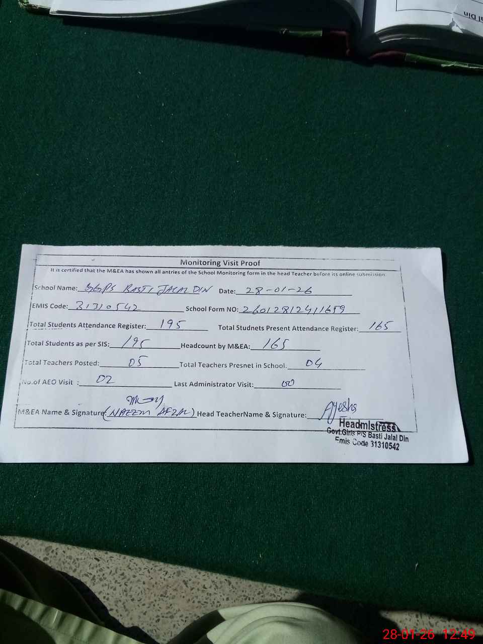 | EMIS Code: 31310542 | Name of School: GGPS BASTI JALAL DIN | |||