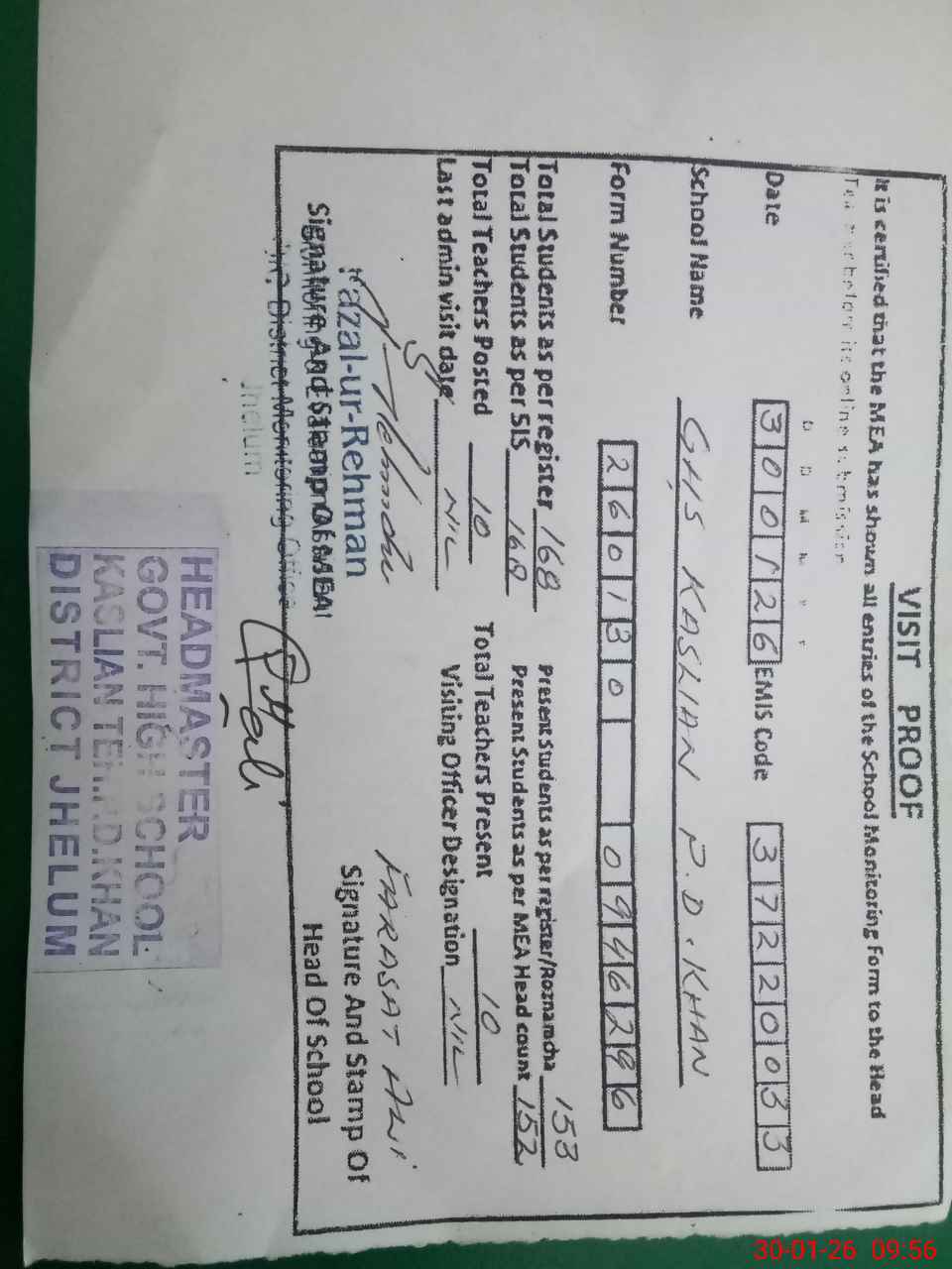 | EMIS Code: 37220033 | Name of School: GHS KASLIAN P.D. KHAN | |||