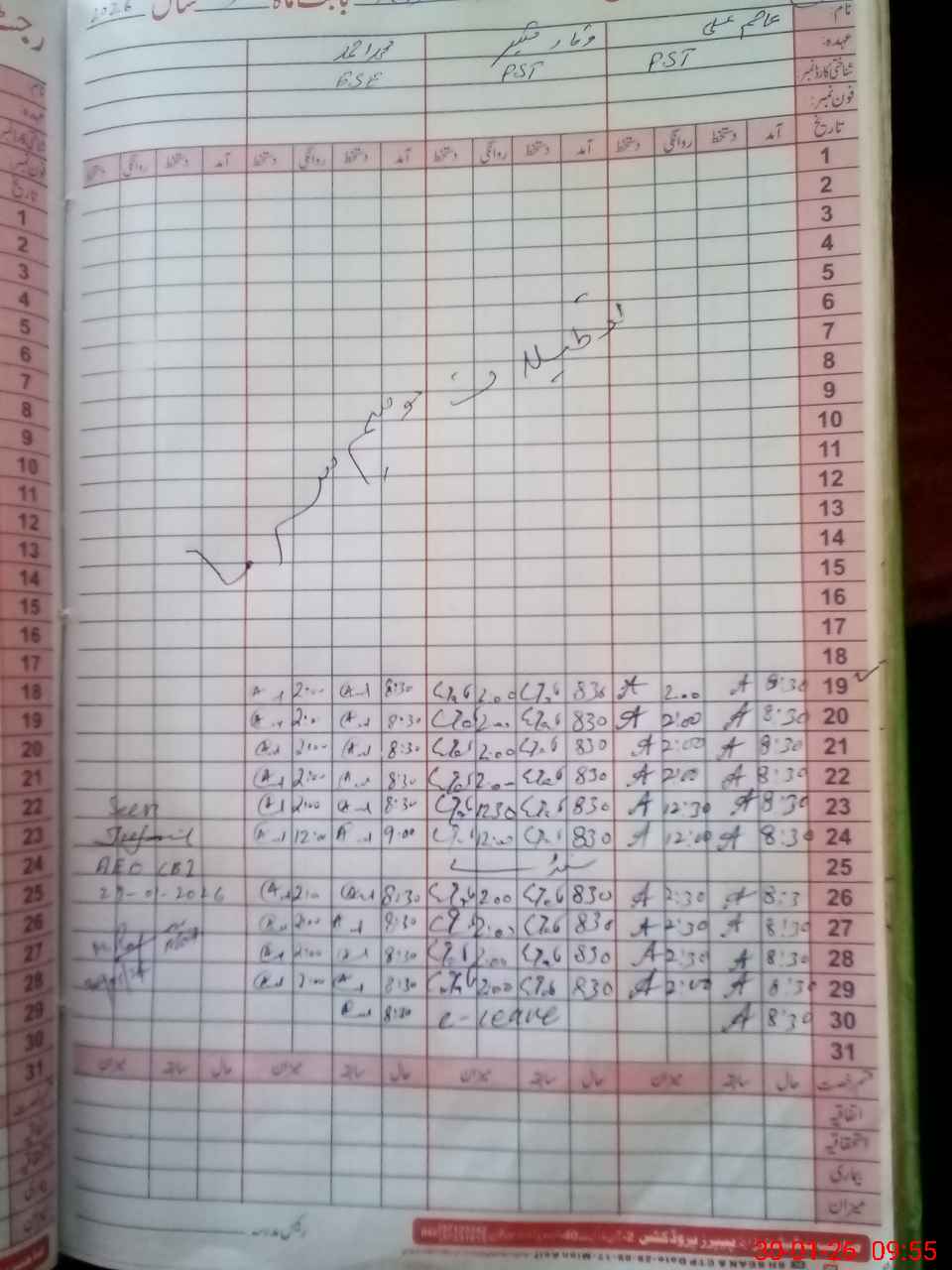| Name: As**** Al**** Designation: (School Headmaster's/Headmistress's) PST Phone/Cell Number: 03**** |