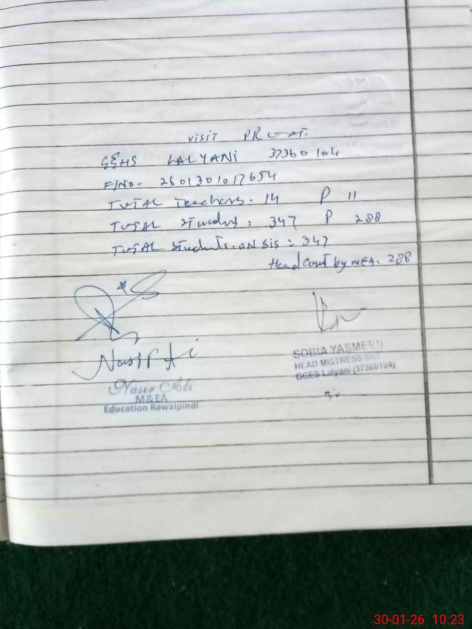| Name: So**** Ya**** Designation: (School Headmaster's/Headmistress's) SST Phone/Cell Number: 03**** |