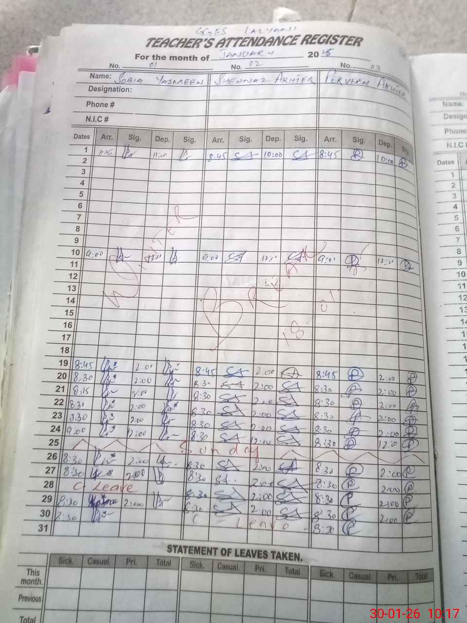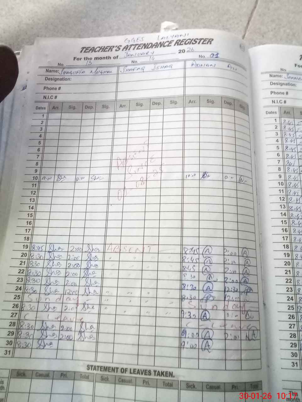 | 37**** | Sh**** Is**** | PST Science/Maths | Regular | 0 | 0 | 0 | 0 | 0 | 0 | 0 | 0 | 0 | Absent (Un-Authorized) |