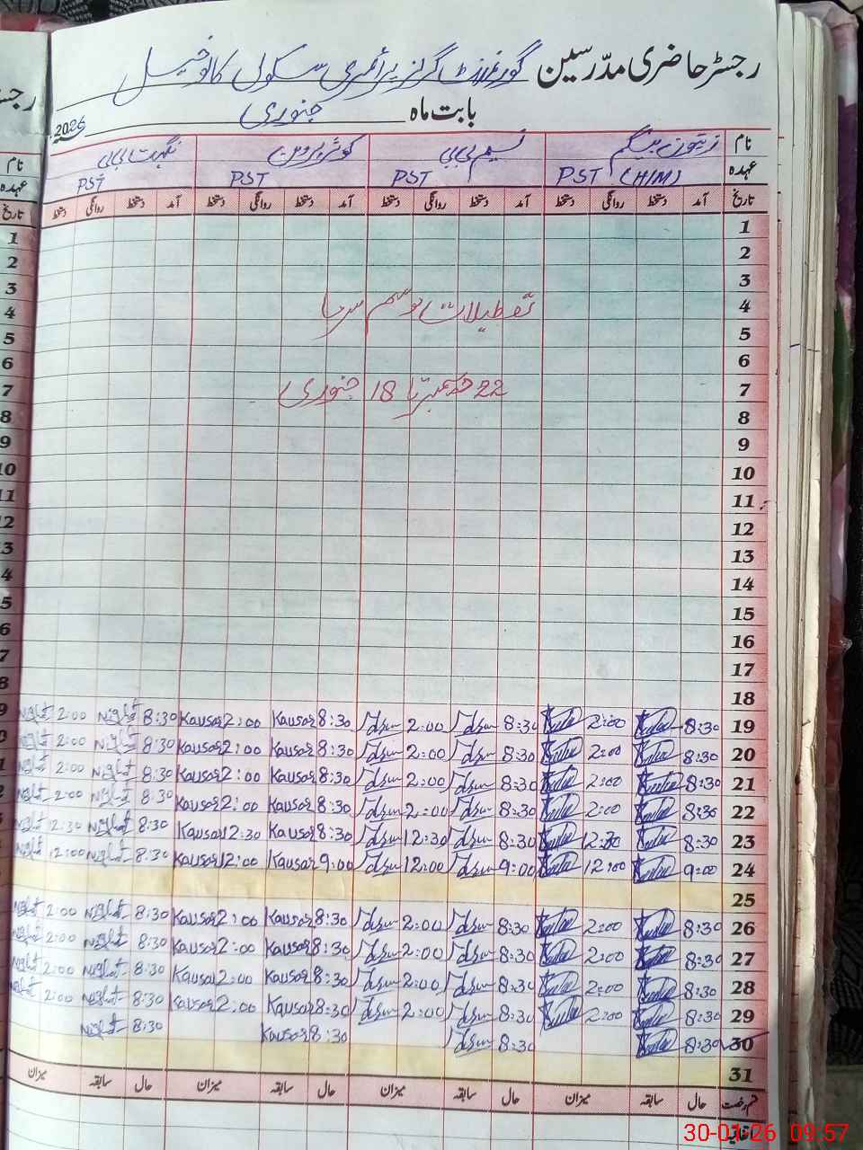 | Name: ZA**** BE**** Designation: (School Headmaster's/Headmistress's) PST/PTC/JV Phone/Cell Number: 03**** |