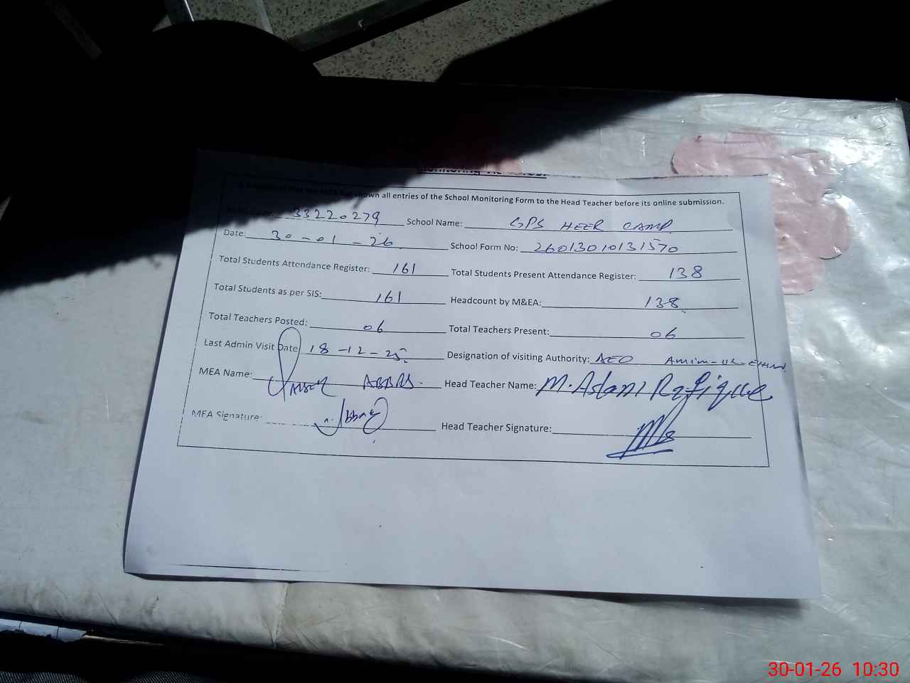 | EMIS Code: 33220279 | Name of School: GPS HEER CAMP | |||
