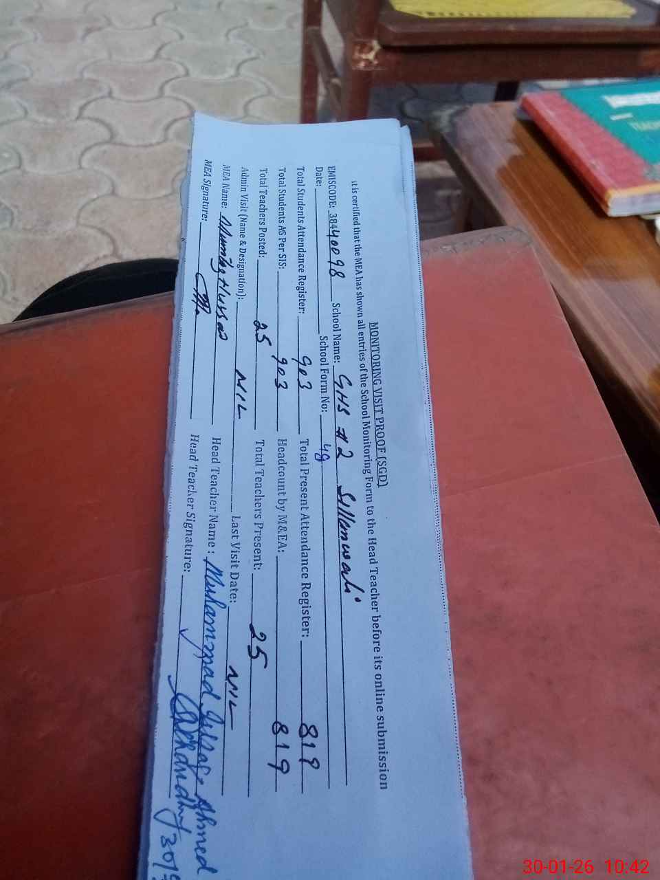| EMIS Code: 38440009 | Name of School: GHS NO.2 SILLANWALI | |||