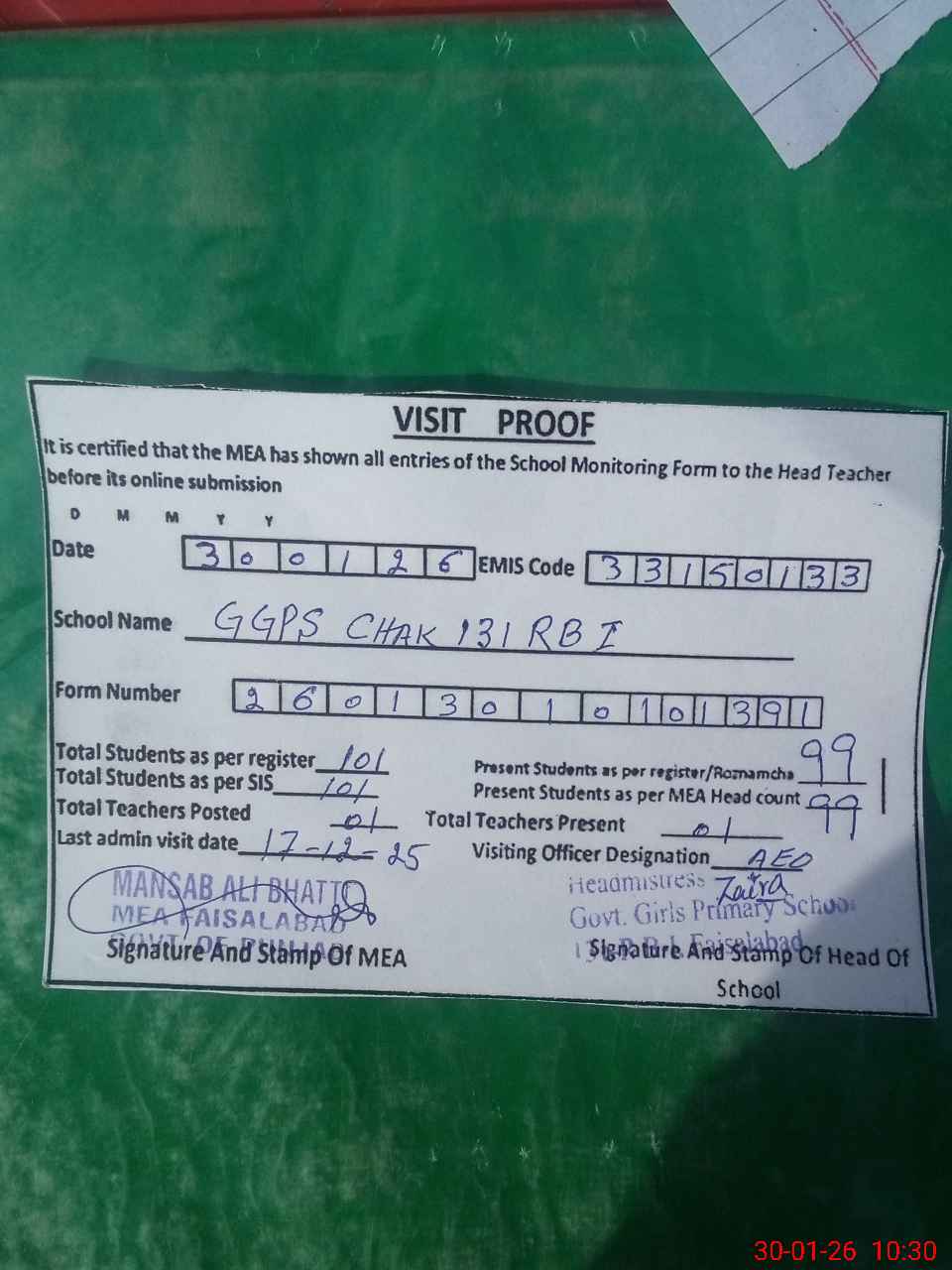 | EMIS Code: 33150133 | Name of School: GGPS CHAK 131 RB 1 | |||