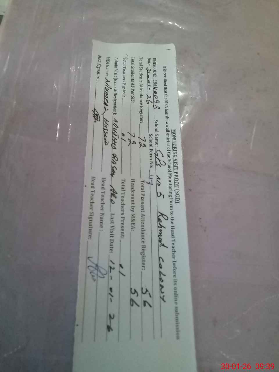 | EMIS Code: 38440098 | Name of School: GPS NO.5 RAHMAT COLONY SILLANWALI | |||