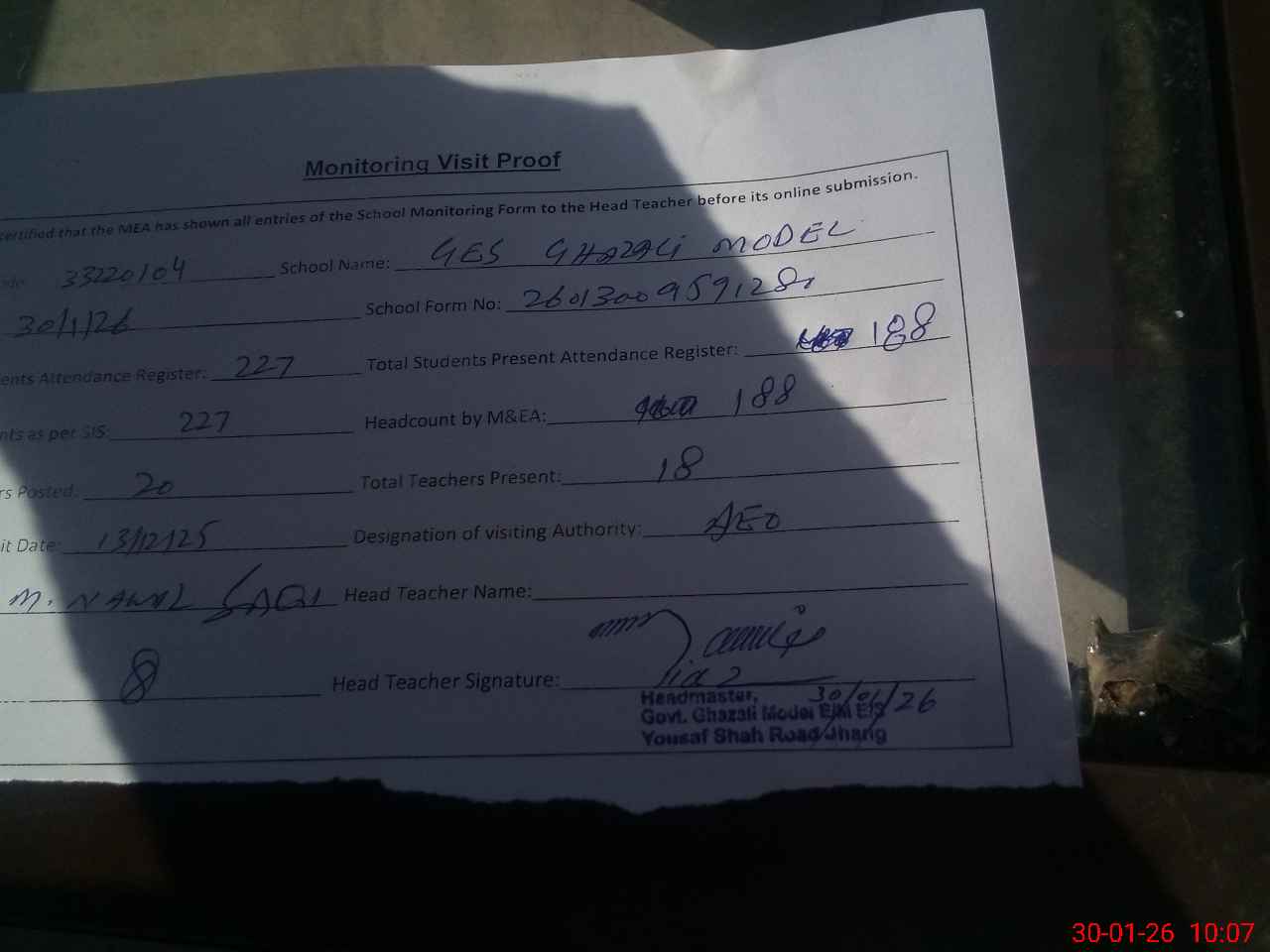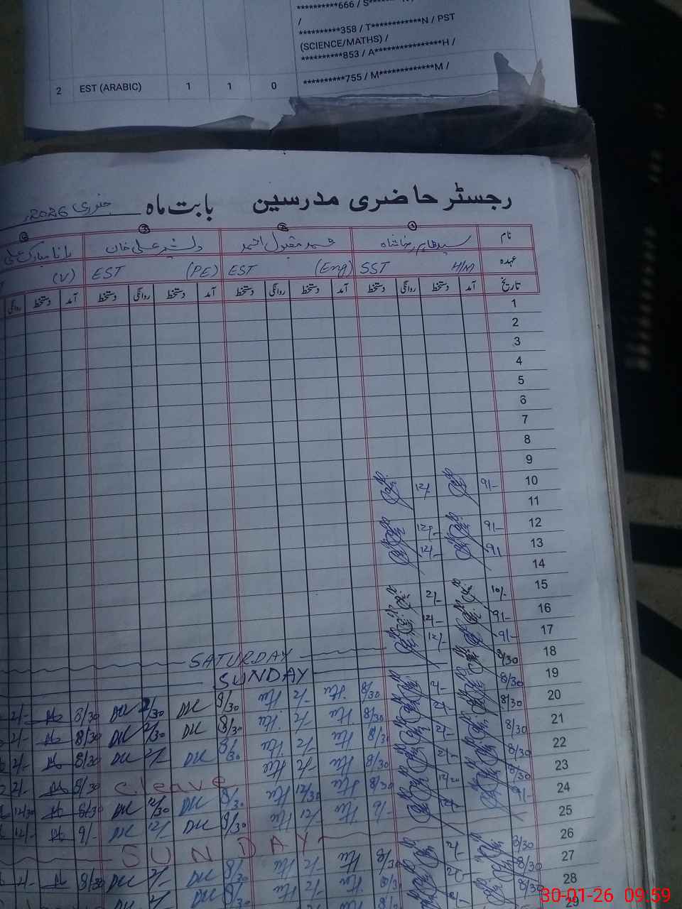 | Name: Sy**** Ta**** Ra**** Sh**** Designation: (School Headmaster's/Headmistress's) SST Phone/Cell Number: 03**** |