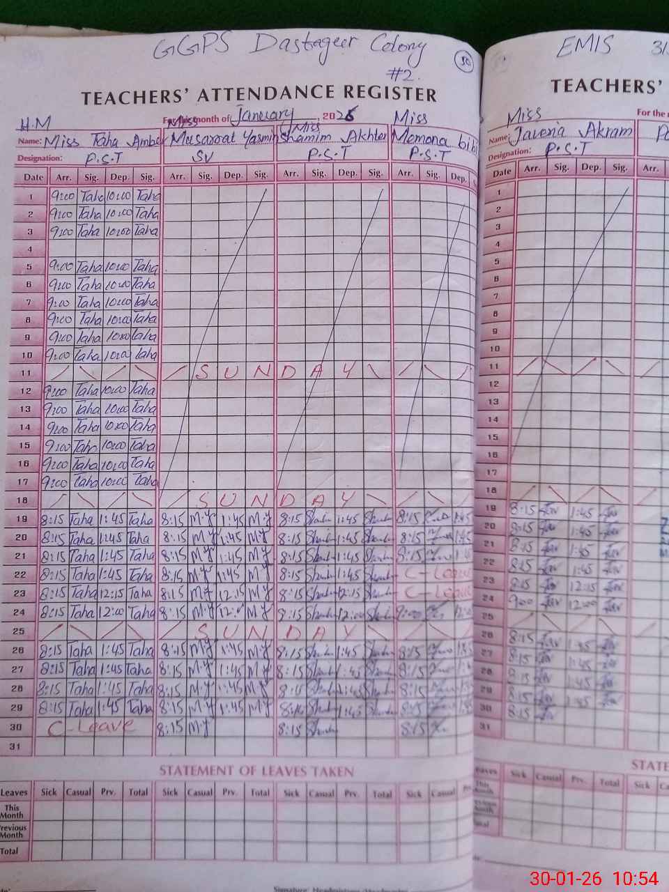 | Leave | Duty | Absent | Maternity | Medical | Ex- Pak |