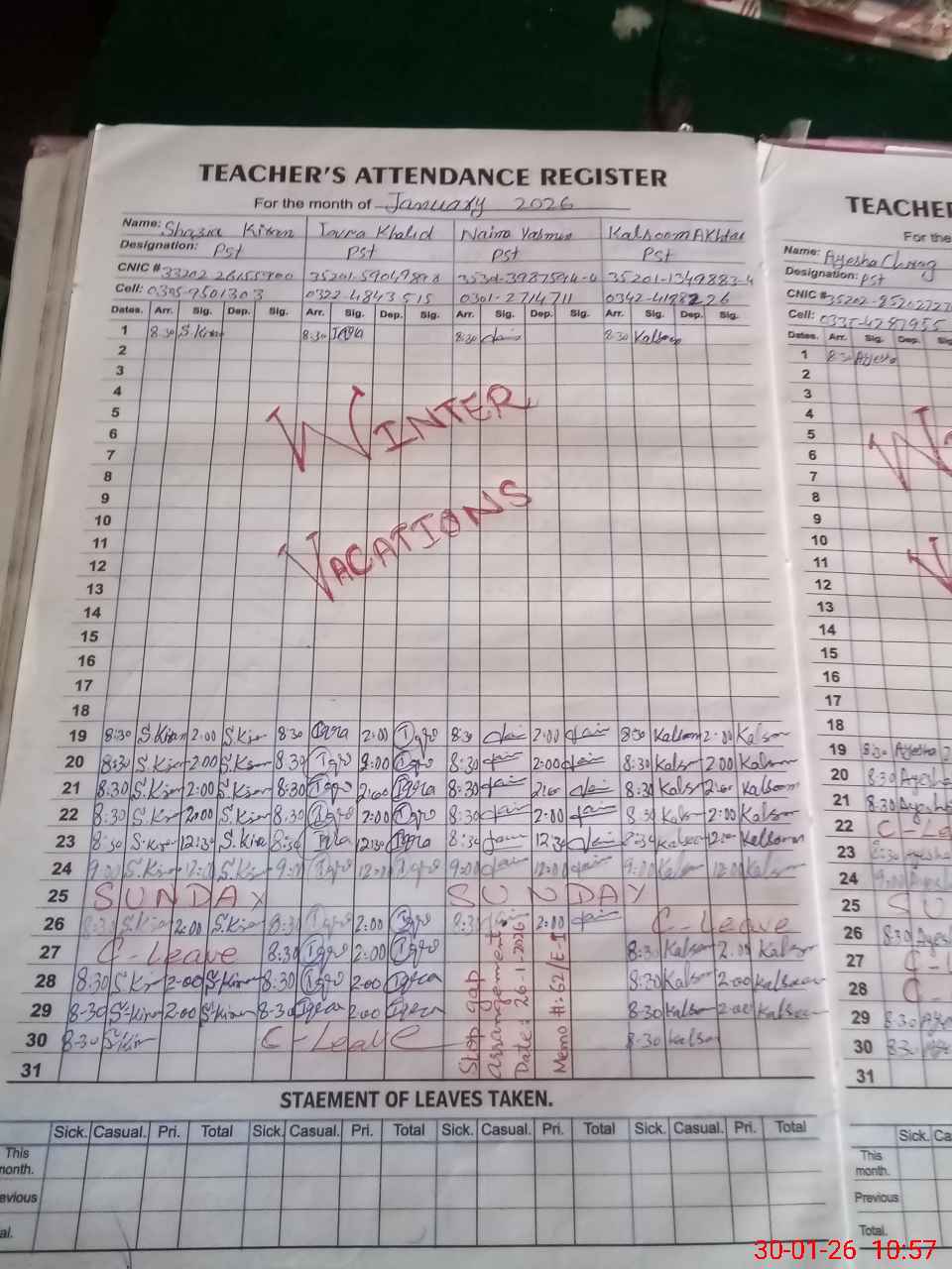| 35**** | Iq**** Kh**** | PST Arts | Regular | 3 | 0 | 0 | 0 | 0 | 0 | 0 | 0 | 3 | Casual |
