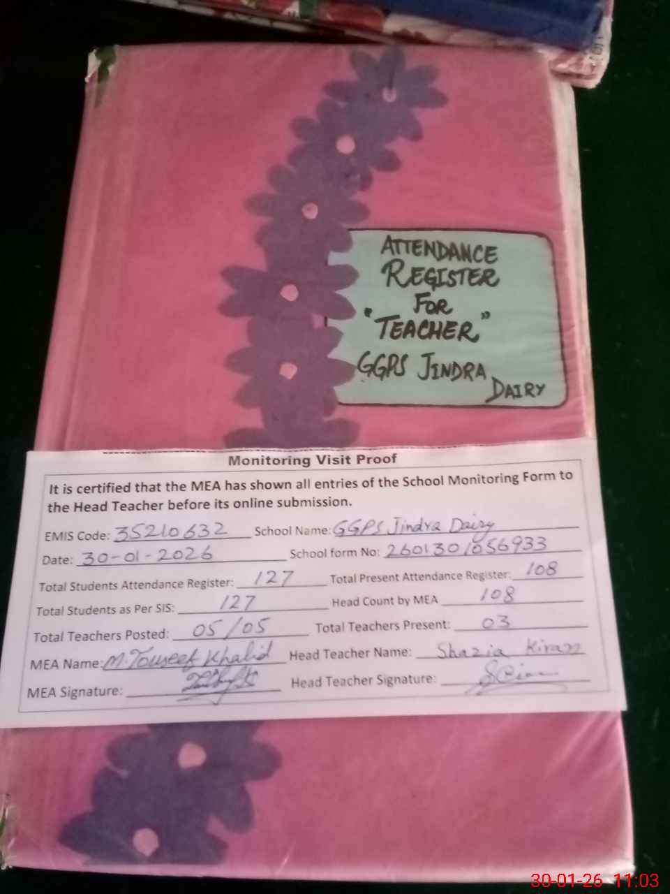 | EMIS Code: 35210632 | Name of School: GGPS JINDRA DAIRY | |||