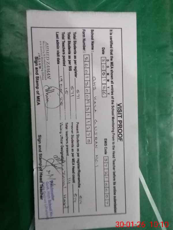 | EMIS Code: 37210007 | Name of School: GHS KALA GUJRAN NO. 1 | |||