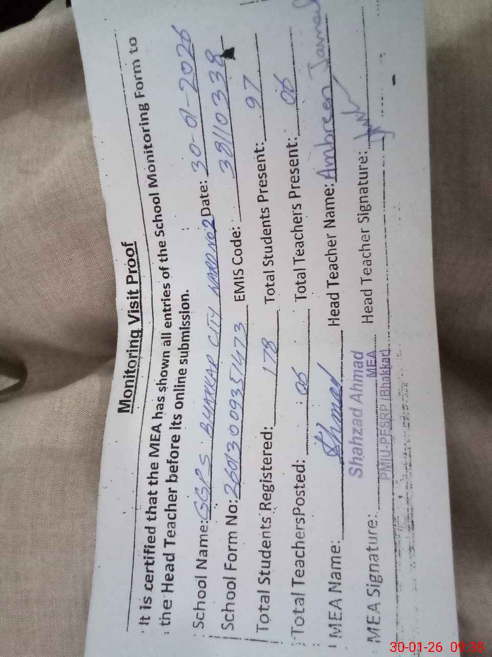 | EMIS Code: 38110338 | Name of School: GGPS BHAKKAR CITY WARD NO 2 | |||