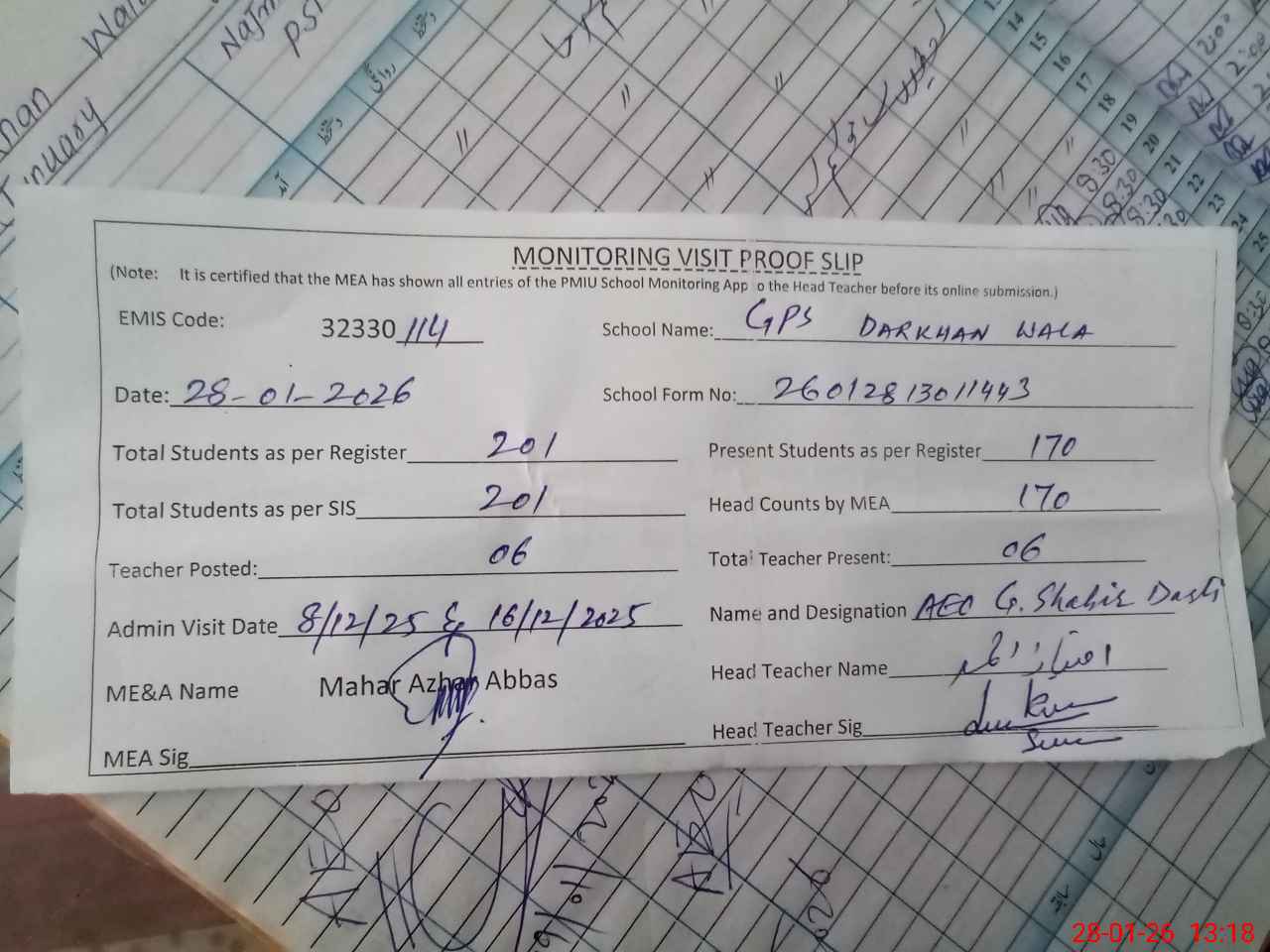 | EMIS Code: 32330114 | Name of School: GPS DARKHAN WALA | |||