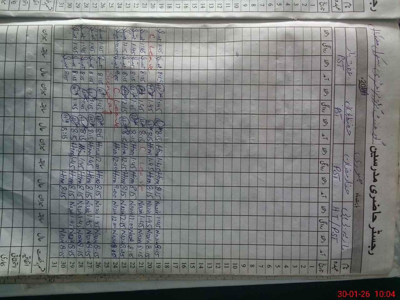 | CNIC | Full Name | Designation | R/C | Absence During Last Calender Month |