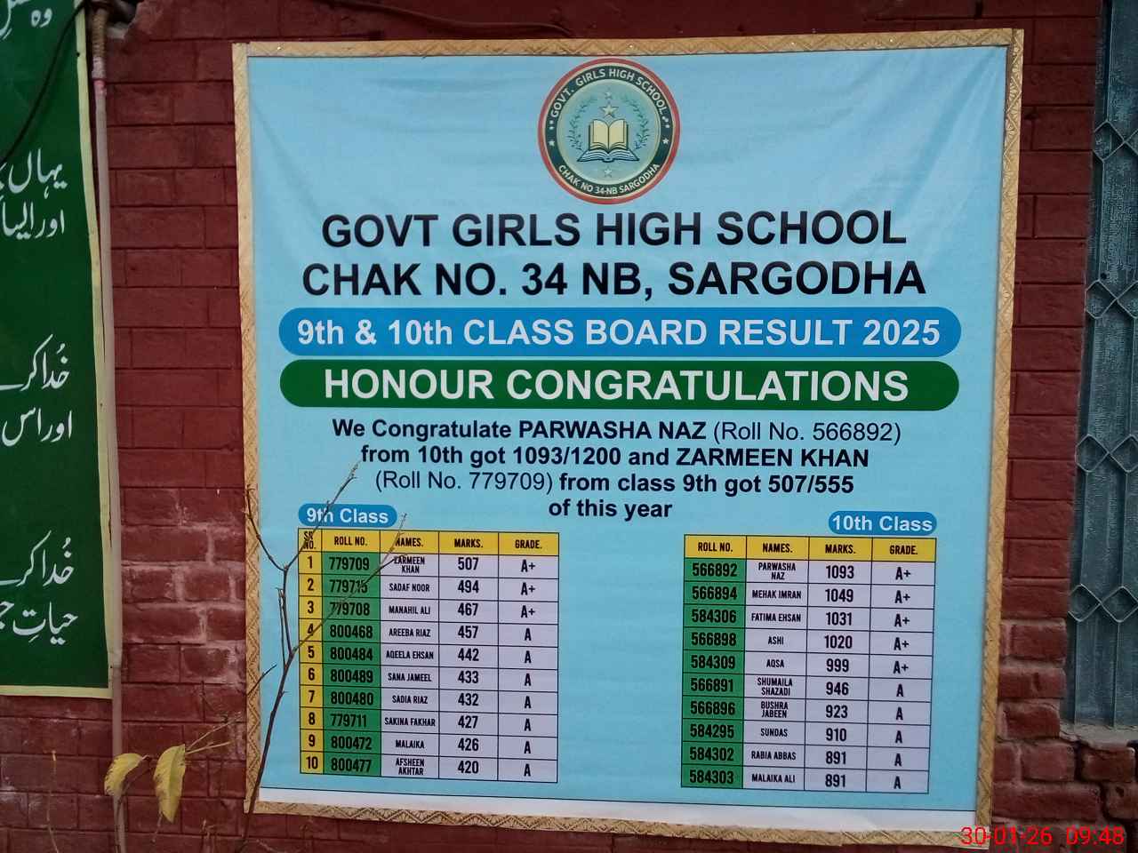 | EMIS Code: 38420193 | Name of School: GGHS CHAK NO.34 NB | |||