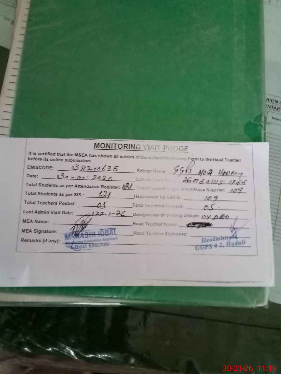 | EMIS Code: 38210635 | Name of School: GGPS NO. 2 HADALI | |||