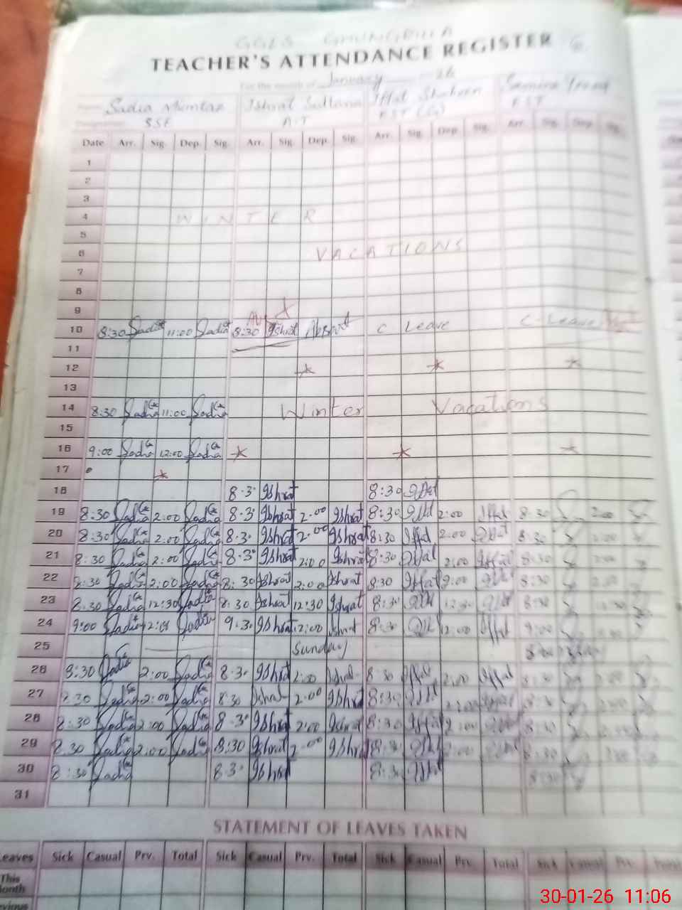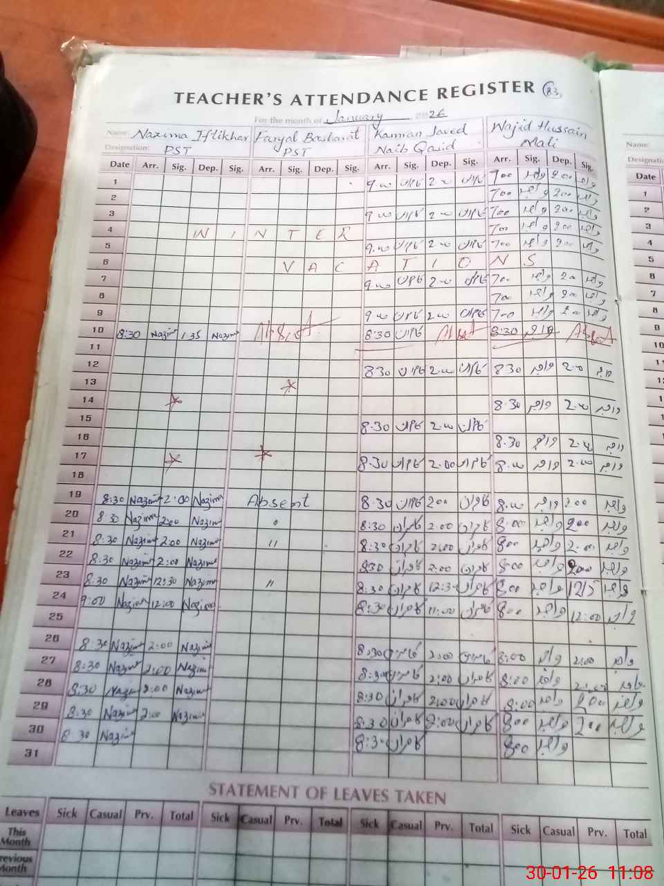 | 37**** | Fa**** Ba**** | PST Arts | Regular | 0 | 0 | 0 | 0 | 0 | 0 | 0 | 0 | 0 | Absent (Un-Authorized) |