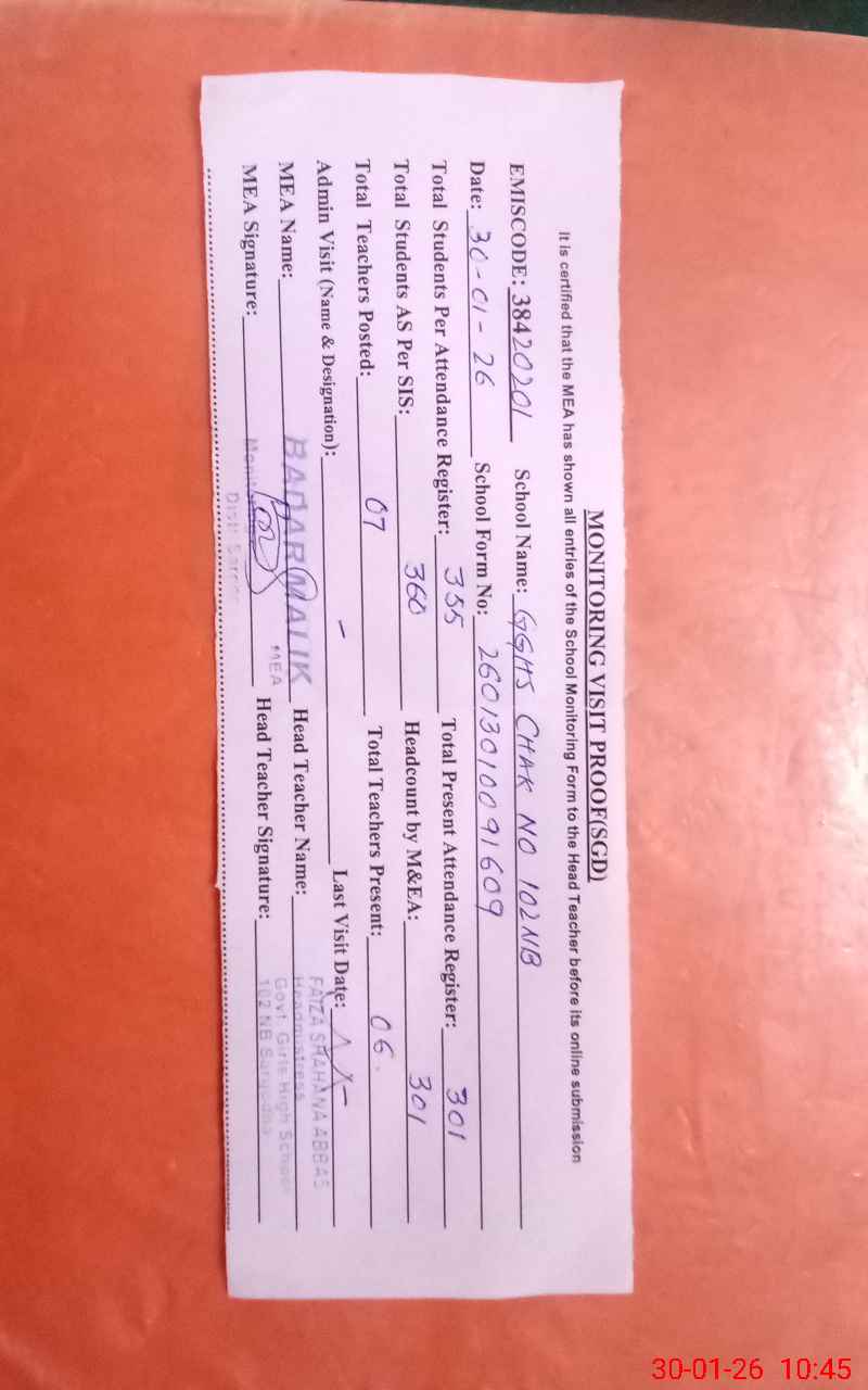 | EMIS Code: 38420201 | Name of School: GGHS CHAK NO.102 NB SARGODHA | |||