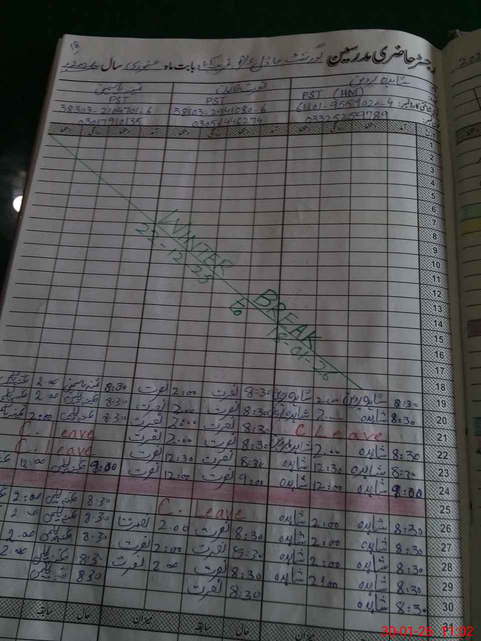 | Name: Sh**** Pe**** Designation: (School Headmaster's/Headmistress's) PST Phone/Cell Number: 03**** |