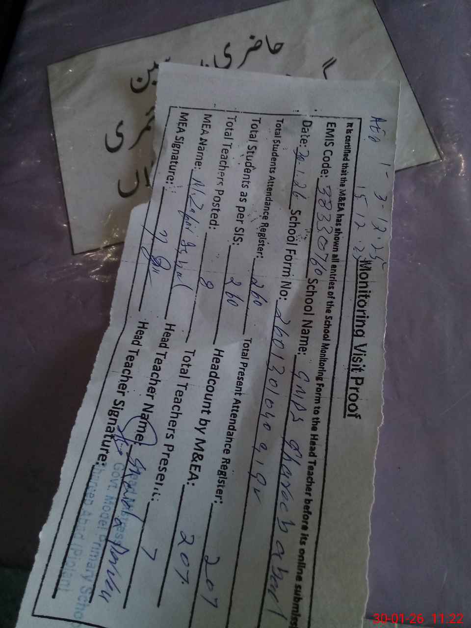 | EMIS Code: 38330760 | Name of School: GMPS GHAREEB ABAD | |||
