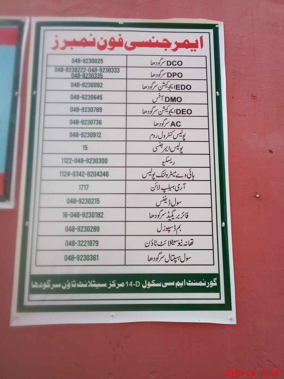 | EMIS Code: 38420401 | Name of School: GPS MC 14 BLOCK D SATELITTE TOWN SARGODHA | |||