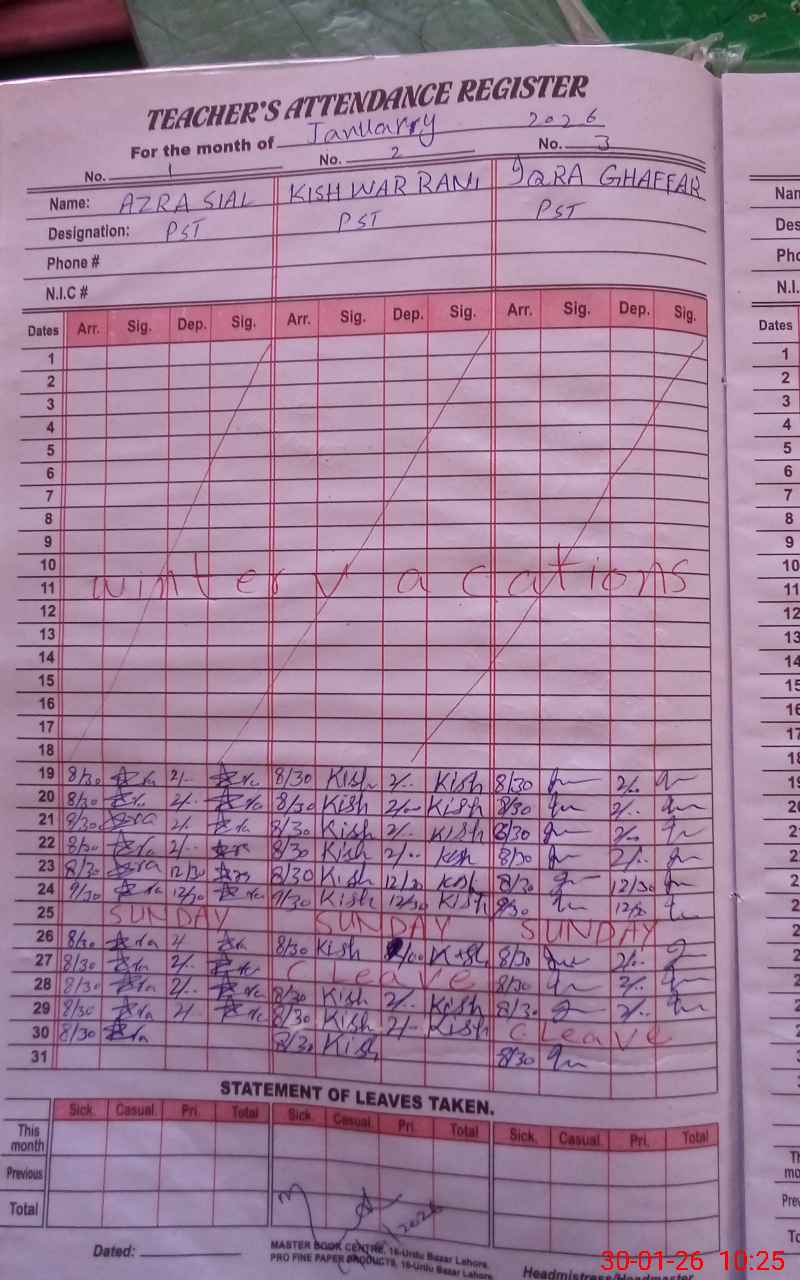 | Name: AZ**** SI**** Designation: (School Headmaster's/Headmistress's) PST Phone/Cell Number: 03**** |