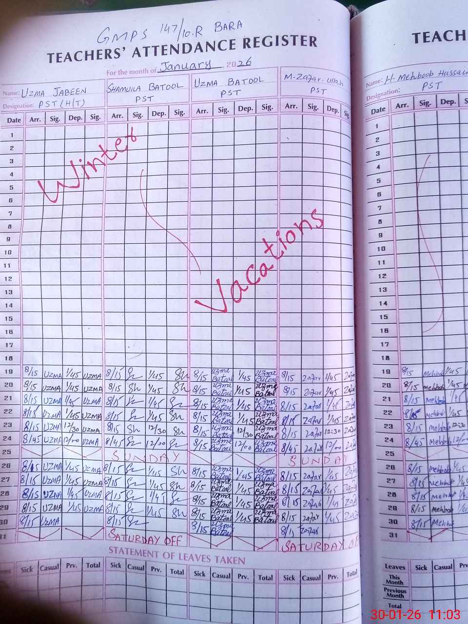 | Name: Uz**** Ja**** Designation: (School Headmaster's/Headmistress's) PST Phone/Cell Number: 03**** |