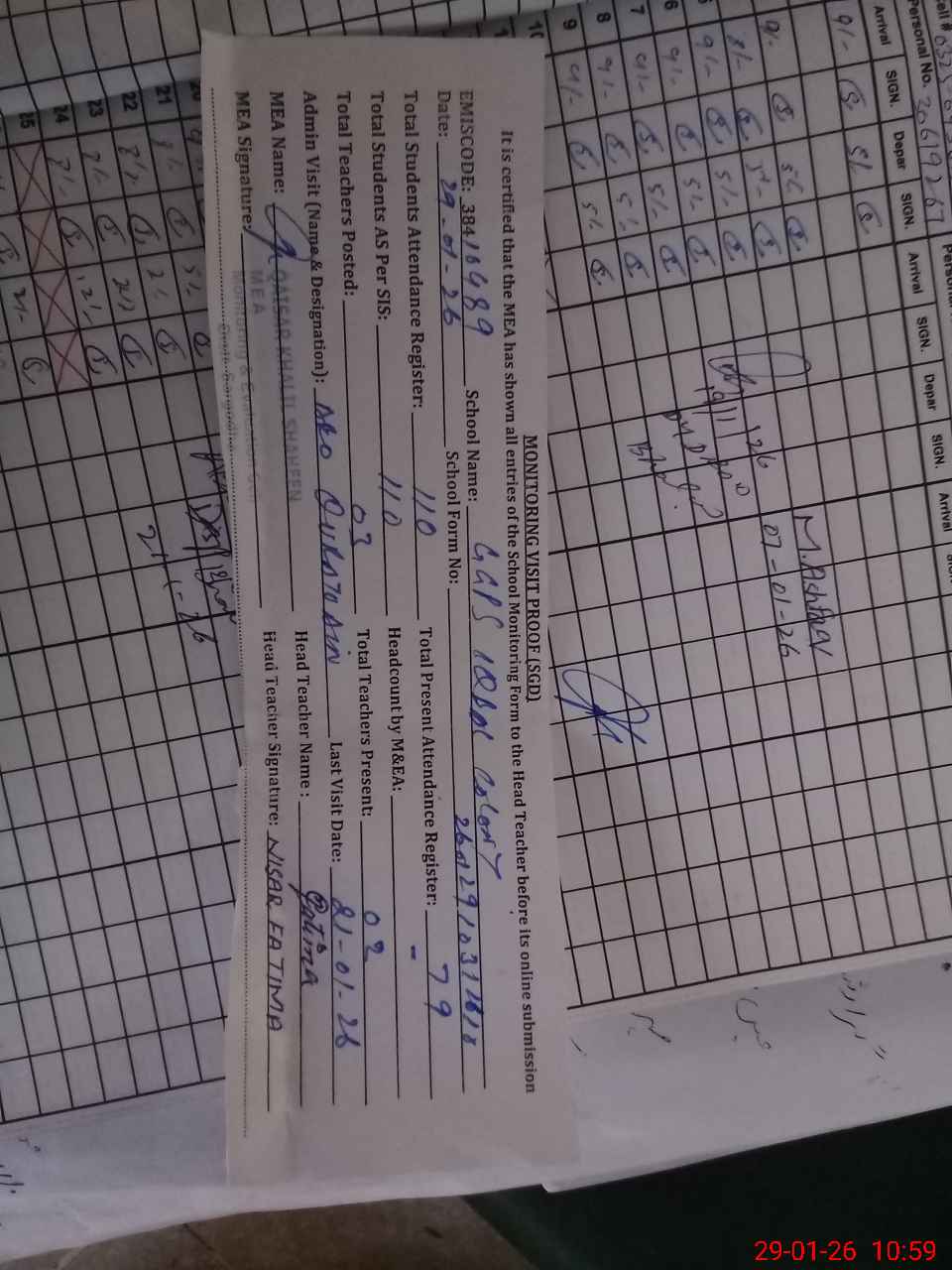 | Monitoring Date: 29-01-2026 | Start Time: 29-01-2026 10:30 AM | End Time: 29-01-2026 10:59 AM | Name of MEA: QA**** KH**** SH**** | |