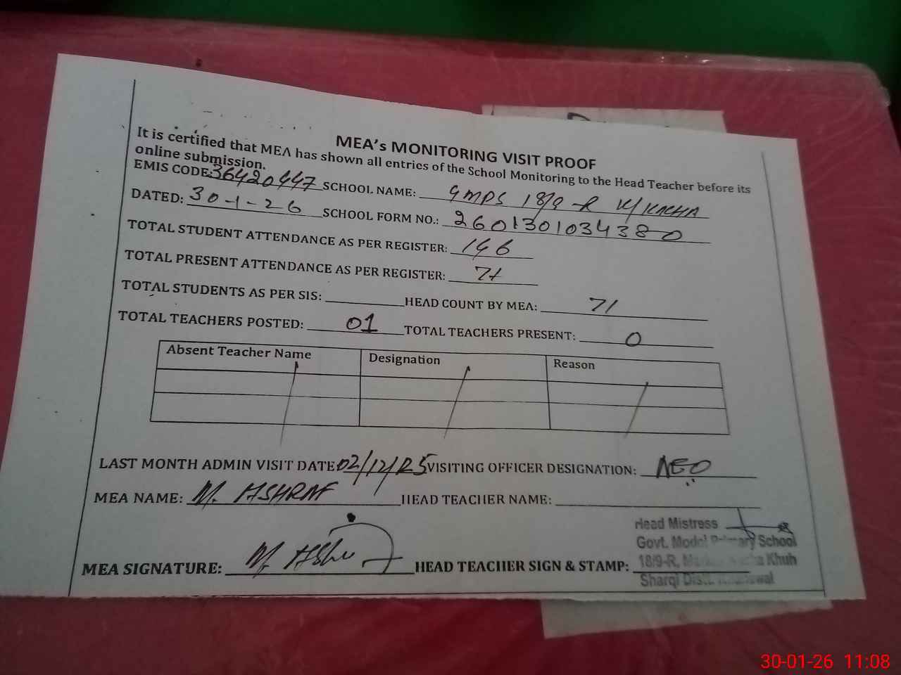 | EMIS Code: 36420447 | Name of School: GMPS 18/9-R, KACHA KHUH | |||