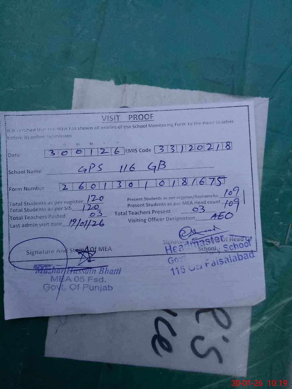 | EMIS Code: 33120218 | Name of School: GPS 116 GB | |||