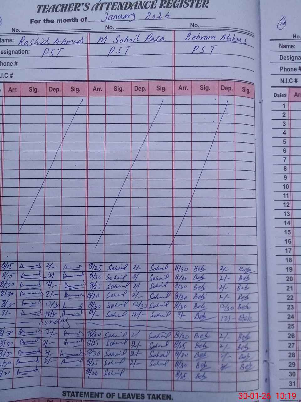 | Name: RA**** AH**** Designation: (School Headmaster's/Headmistress's) PST Phone/Cell Number: 03**** |