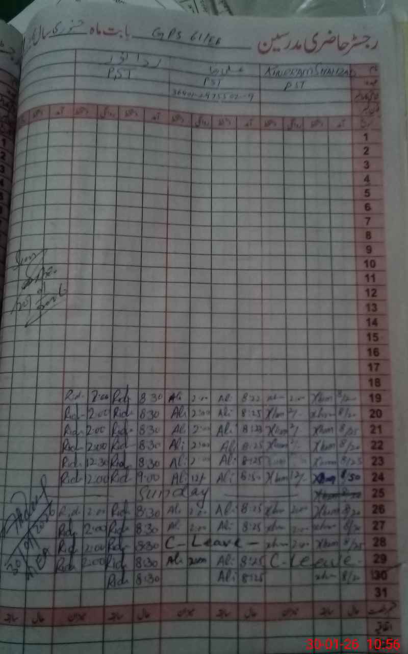 | CNIC | Full Name | Designation | R/C | Absence During Last Calender Month |