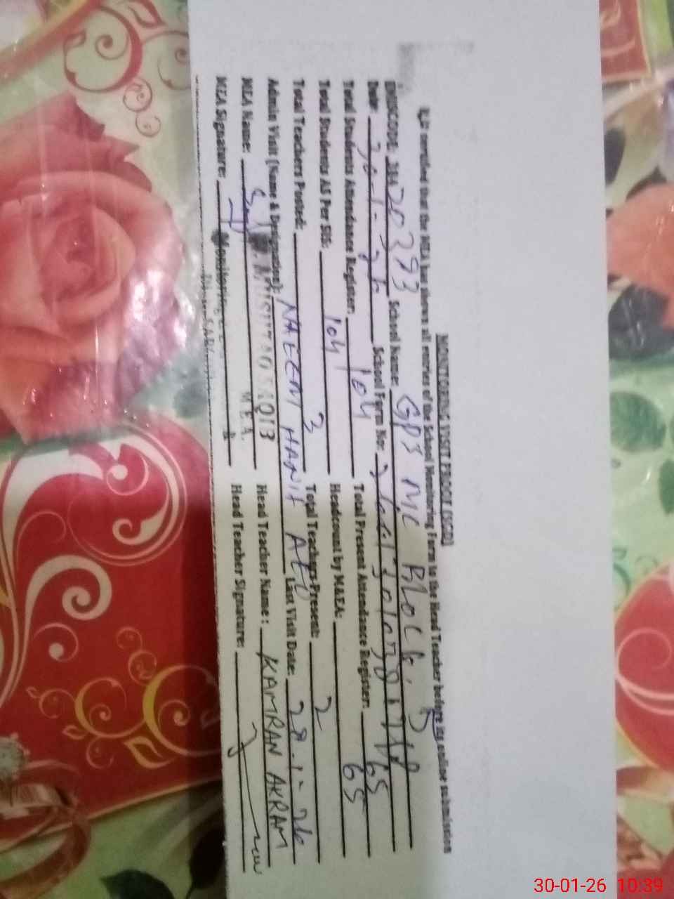 | EMIS Code: 38420393 | Name of School: GPS MC BLOCK NO.5 SARGODHA | |||