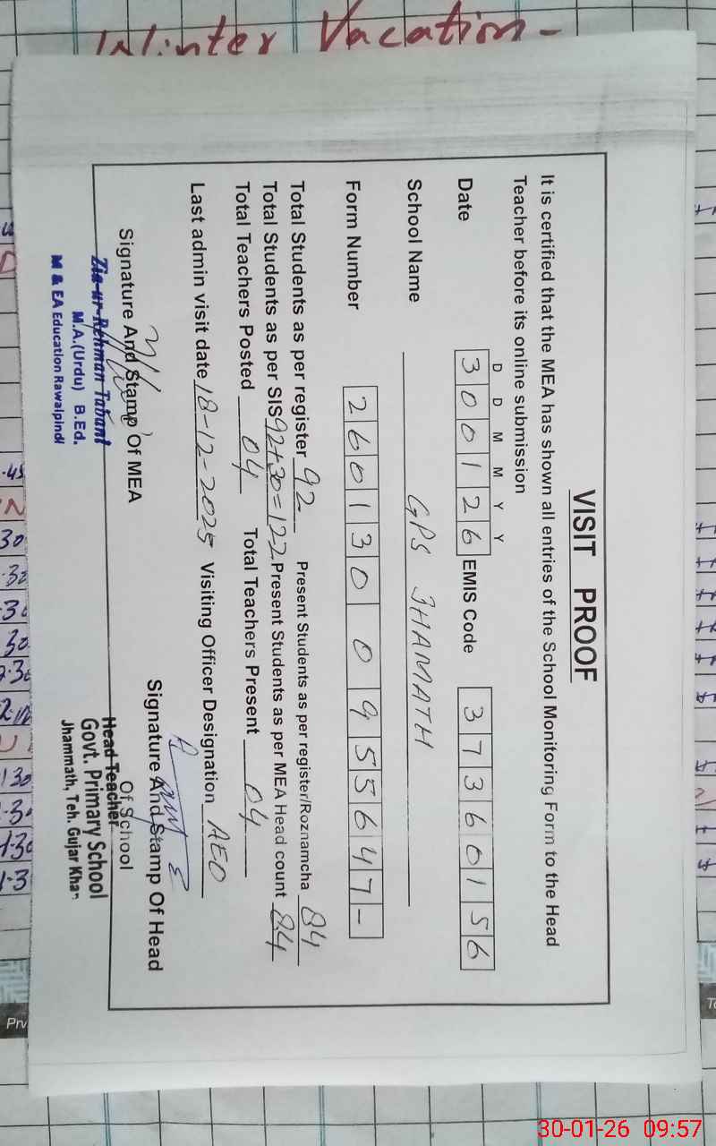 | EMIS Code: 37360156 | Name of School: GPS JHAMATH | |||