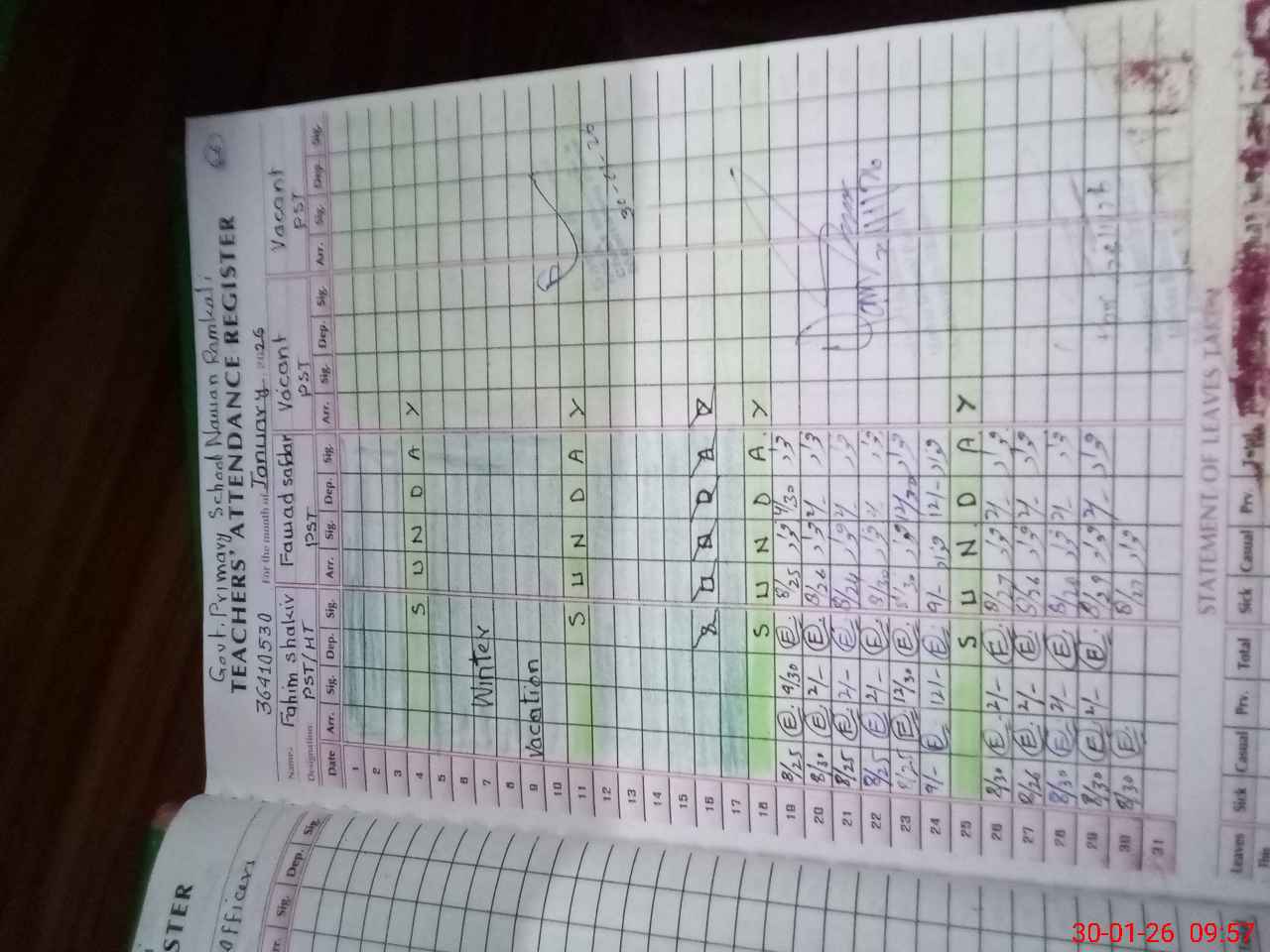 | Name: FA**** SH**** Designation: (School Headmaster's/Headmistress's) PST Phone/Cell Number: 03**** |