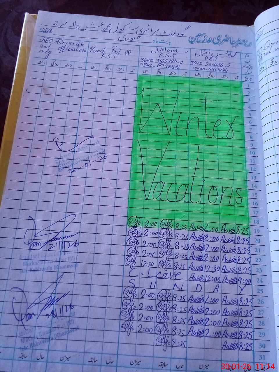 | Name: Mu**** Aw**** Iq**** Designation: (School Headmaster's/Headmistress's) PST Phone/Cell Number: 03**** |