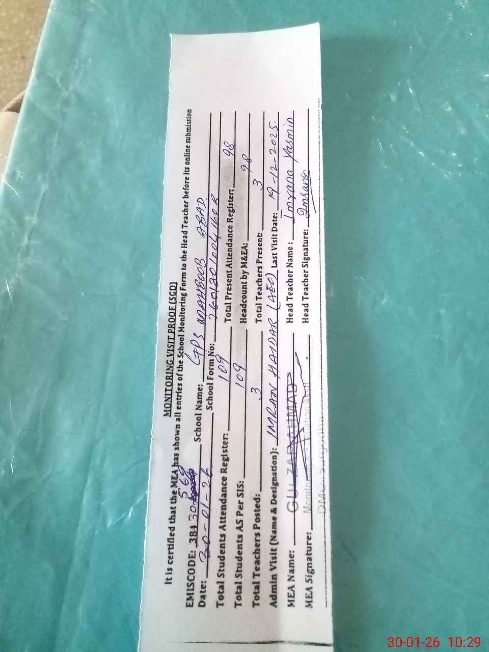 | EMIS Code: 38430569 | Name of School: GPS MAHBOOB ABAD | |||