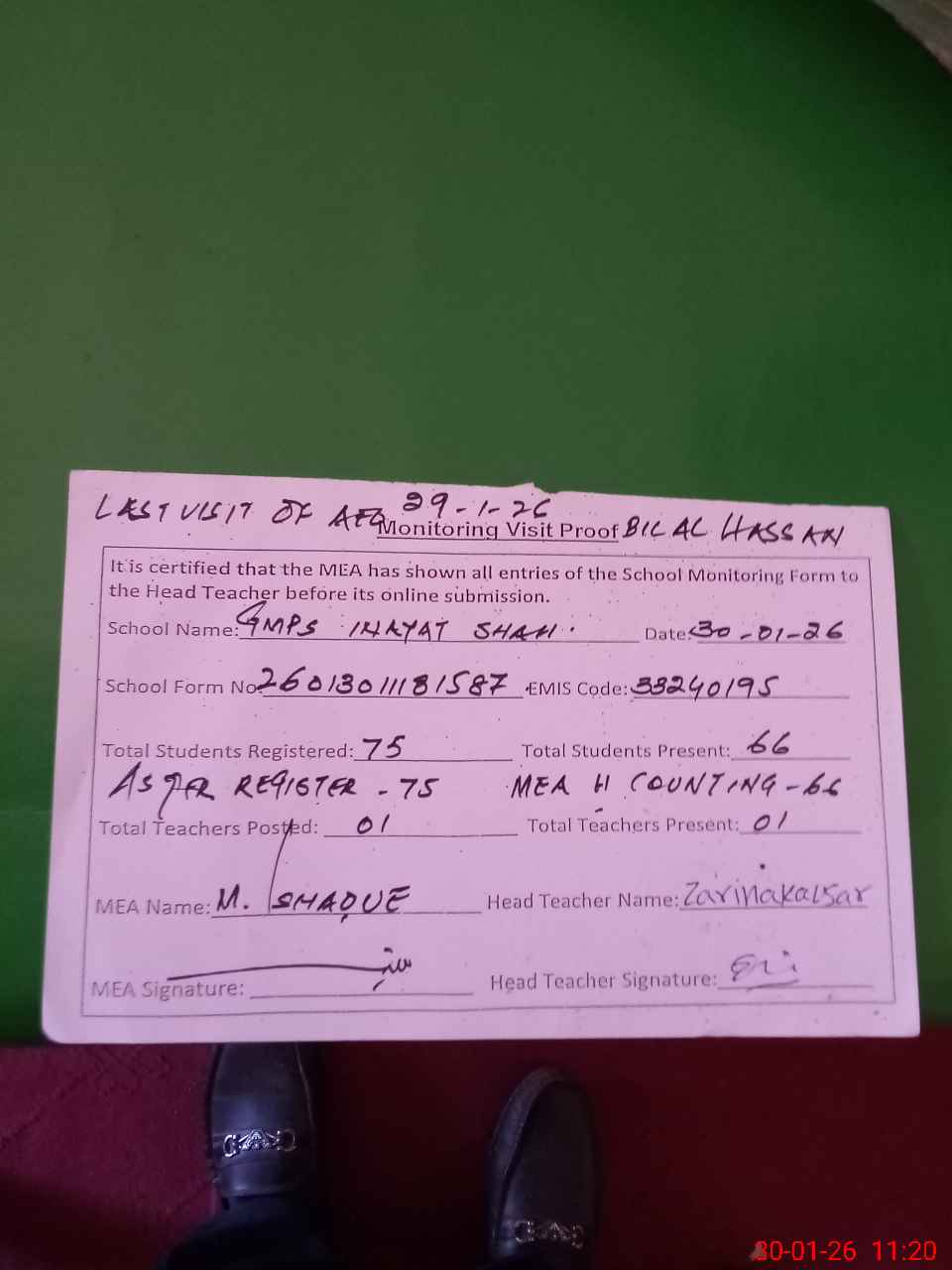 | EMIS Code: 33240195 | Name of School: GMPS ANAYAT SHAH | |||