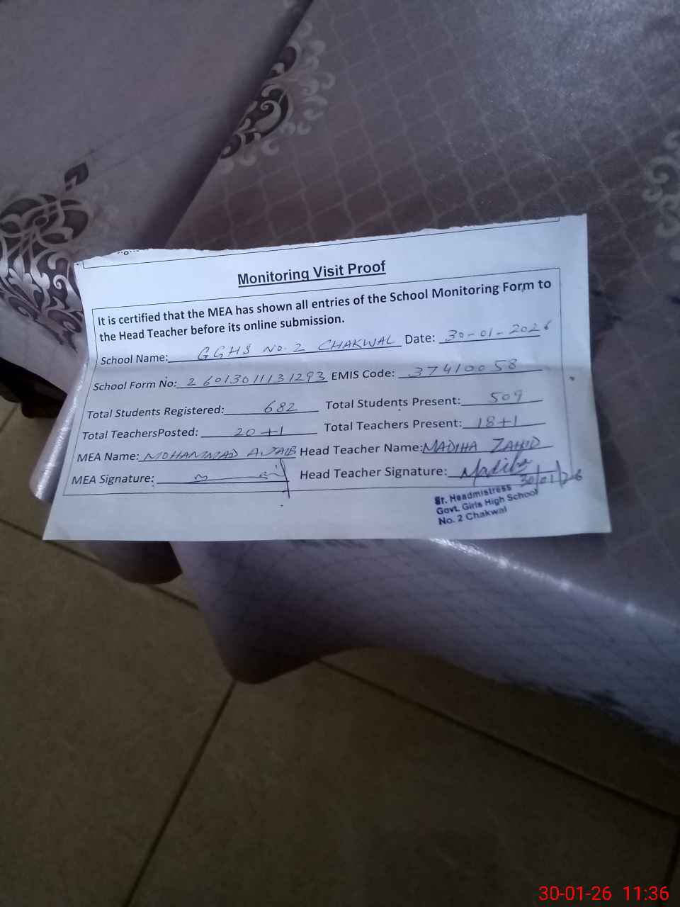 | EMIS Code: 37410058 | Name of School: GGHS NO. 2 CHAKWAL | |||