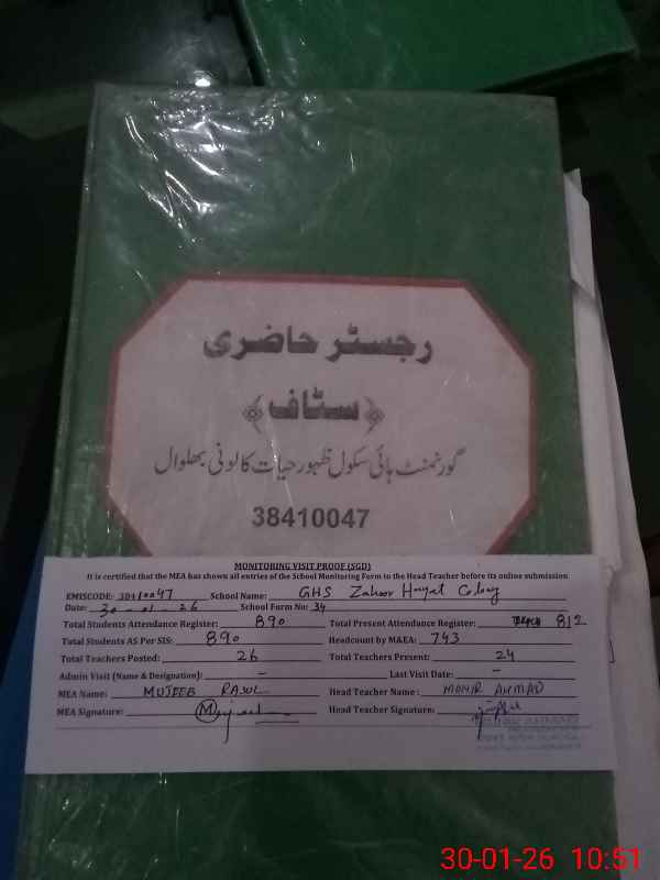 | EMIS Code: 38410047 | Name of School: GHS ZAHOOR HAYAT COLONY BHALWAL | |||