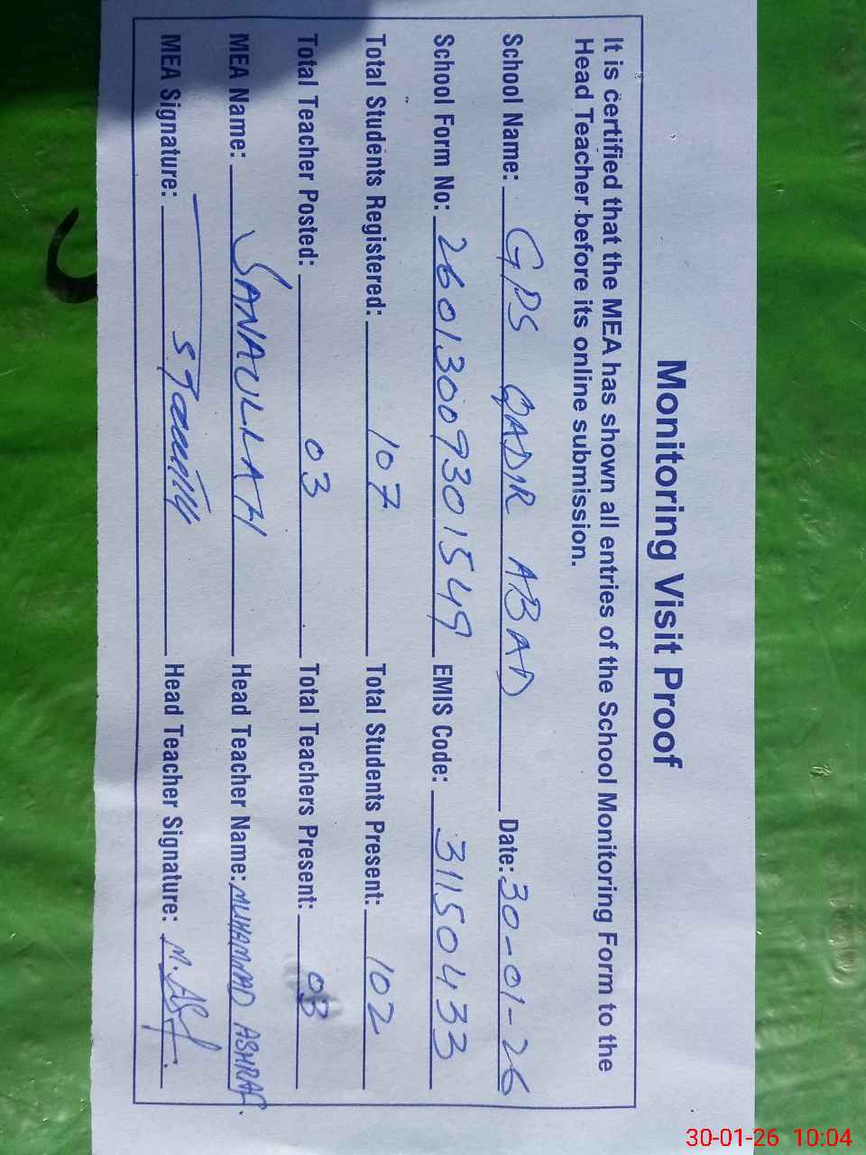| EMIS Code: 31150433 | Name of School: GPS QADIR ABAD | |||