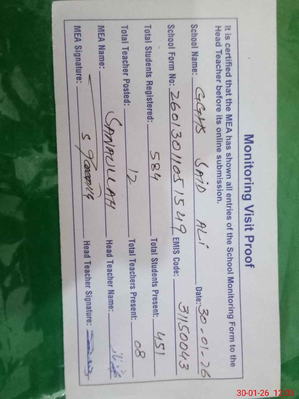| EMIS Code: 31150043 | Name of School: GGHS SAID ALI | |||