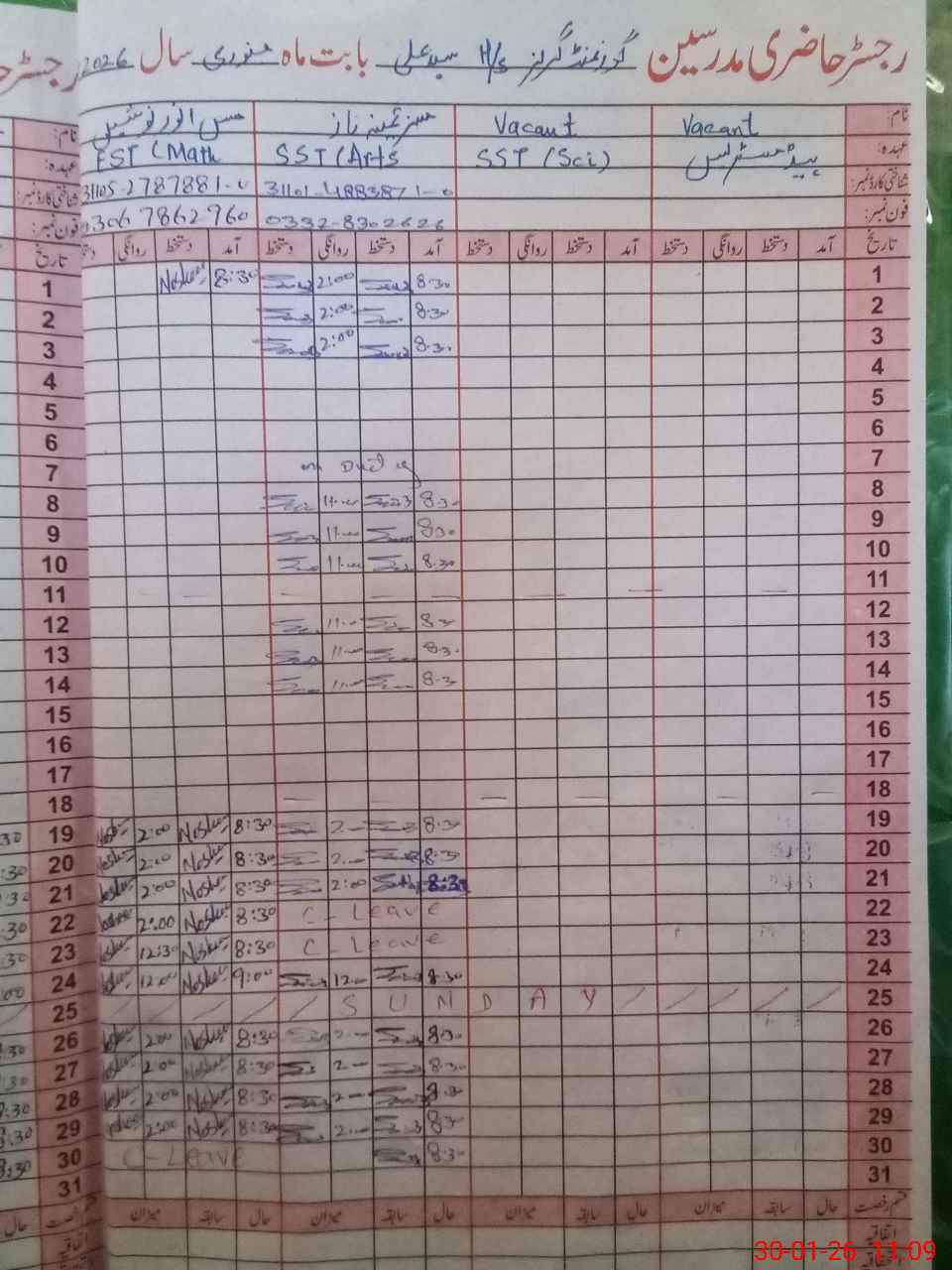 | Name: Sa**** Na**** Designation: (School Headmaster's/Headmistress's) SST. Art Phone/Cell Number: 03**** |