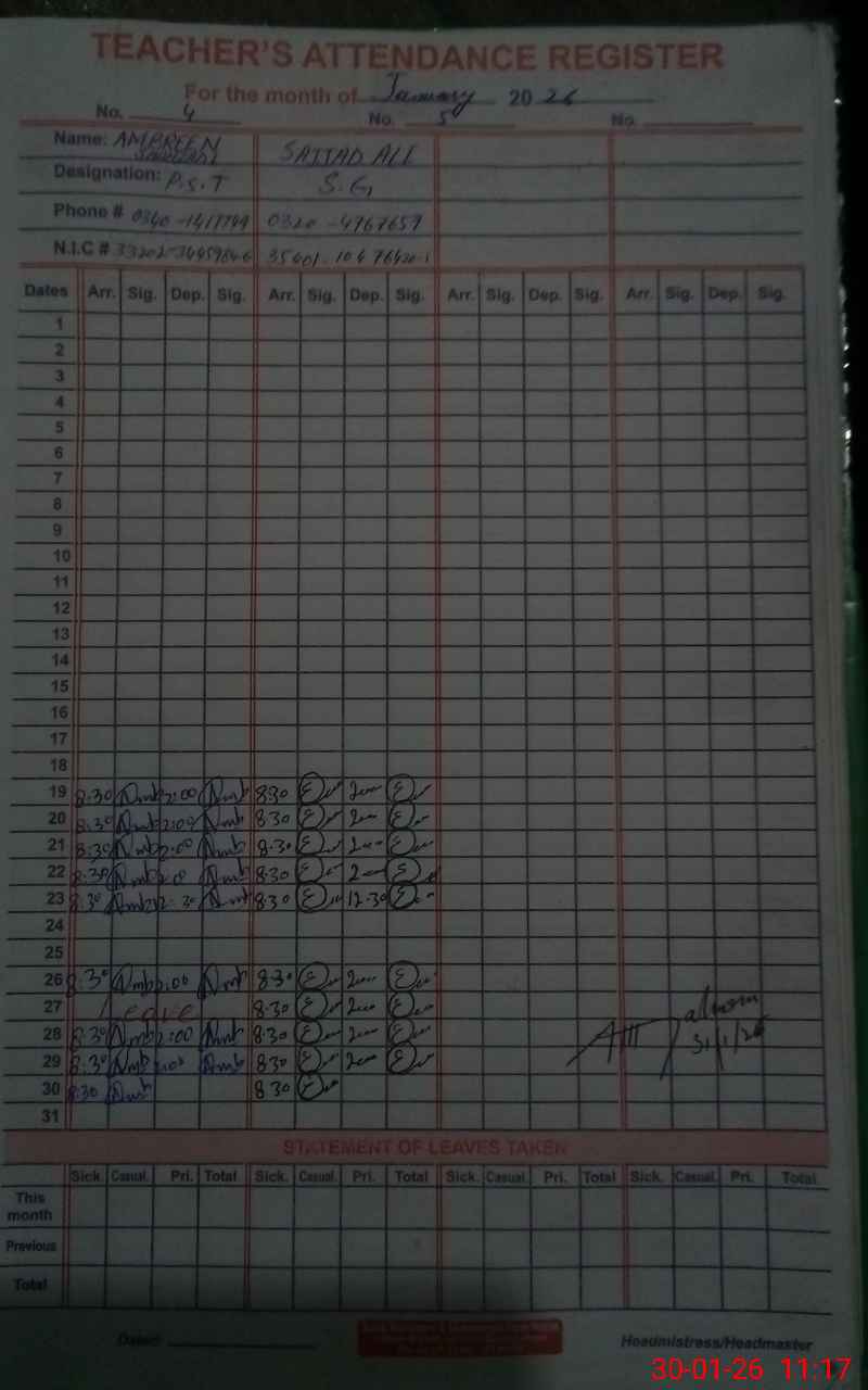 | Name: IF**** AL**** Designation: (School Headmaster's/Headmistress's) PTC/JV Phone/Cell Number: 03**** |