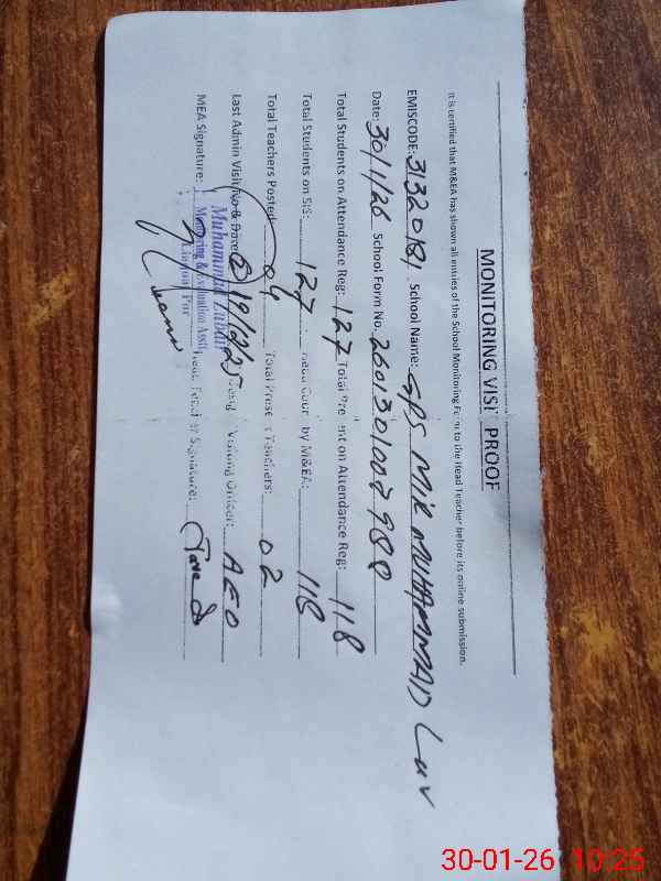 | EMIS Code: 31320181 | Name of School: GPS MIR MUHAMMAD LAR | |||