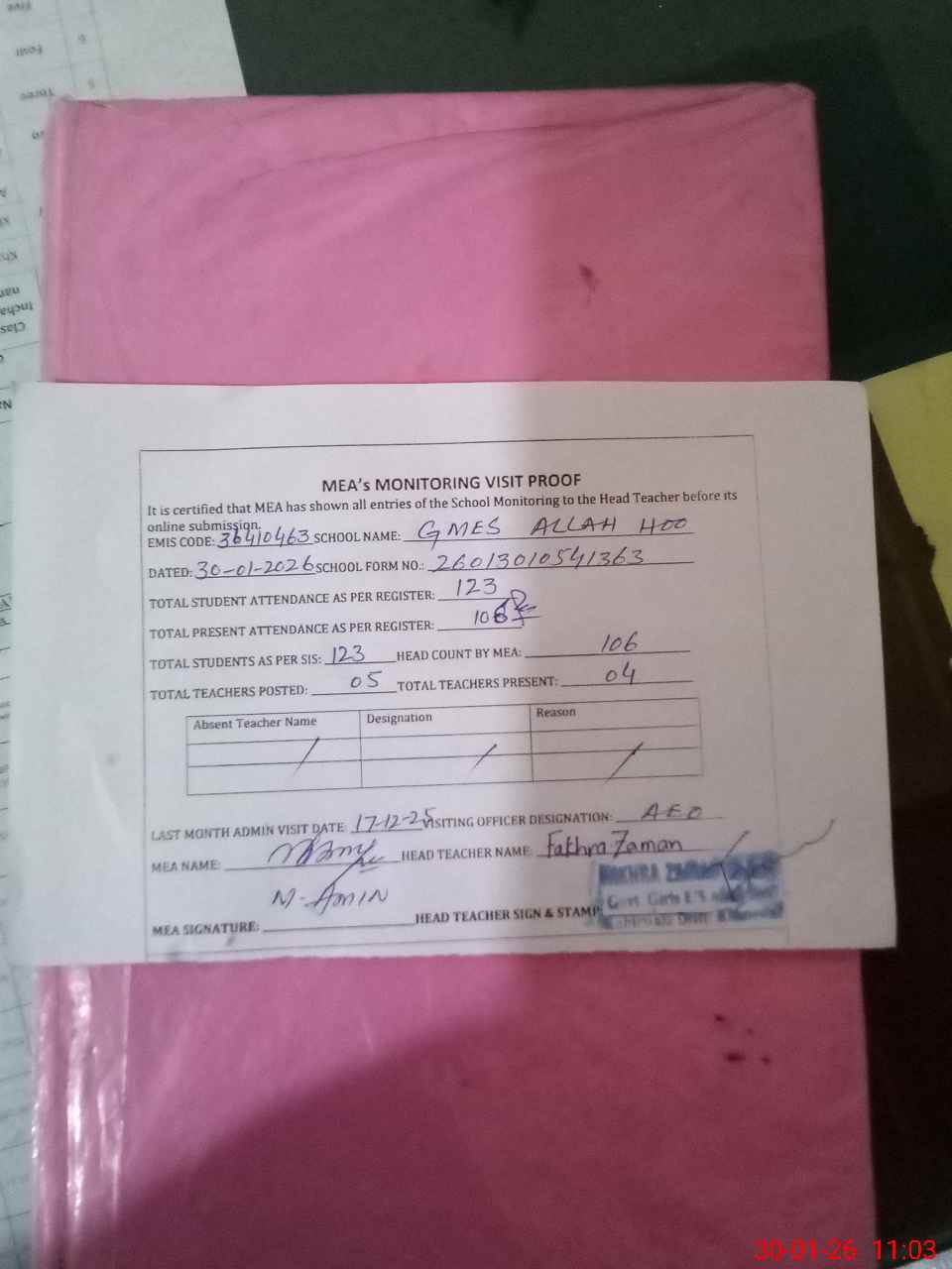 | EMIS Code: 36410463 | Name of School: GMES ALLAH HOO, ABDUL HAKIM | |||